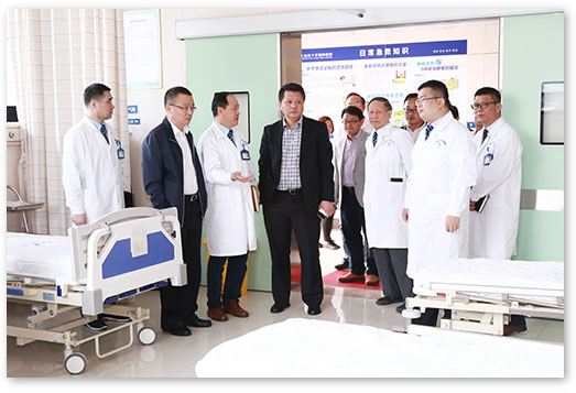 考察神經(jīng)康復醫(yī)學科,很多患者正在進行康復鍛煉,“由于腦科的特殊性,中風患者較多,對康復的需求很大,在這里經(jīng)過一段時間的康復治療后,很多患者的功能得到改善,有一些患者是躺著進來,走著出去的。”項院長說,康復醫(yī)學科是我院建設的重中之重,建好了受益的是千千萬萬患者,希望通過政府與醫(yī)院的共同努力引起社會對康復的重視。