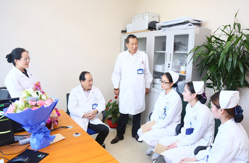 4月25日,在護理部的組織下,項耀鈞院長帶領(lǐng)醫(yī)務(wù)科科長沈廣智、護理部主管護師李京納來到事發(fā)病區(qū)。項耀鈞院長對當(dāng)事護士的工作給予了充分的肯定,對她們的遭遇表達了深切的關(guān)懷,同時更對她們的堅定和無私給予了高度贊揚。