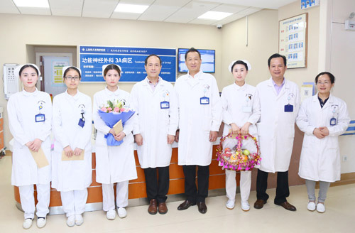 4月25日,院長項耀鈞、醫(yī)務(wù)科科長沈廣智和護理部主管護師李京納來到三樓A病區(qū)功能神經(jīng)外科,看望被癲癇伴突發(fā)精神綜合癥患者所傷的四名醫(yī)護人員,表達醫(yī)院的關(guān)懷和慰問,同時為當(dāng)事護士送上鮮花、水果和慰問信。
