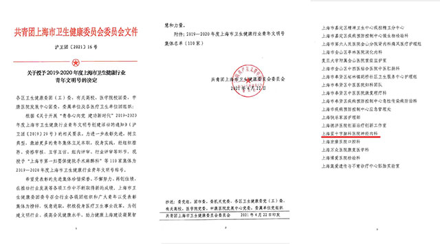近日,共青團(tuán)上海衛(wèi)生健康委員會(huì)委員會(huì)下發(fā)《關(guān)于授予2019-2020年度上海市衛(wèi)生健康行業(yè)青年文明號的決定》,上海藍(lán)十字腦科醫(yī)院神經(jīng)內(nèi)科被授予“2019-2020年度上海市衛(wèi)生健康行業(yè)青年文明號”榮譽(yù)稱號。這一榮譽(yù)是對這個(gè)朝氣蓬勃、奮發(fā)向上、充滿活力的青年團(tuán)隊(duì)的肯定與表彰。