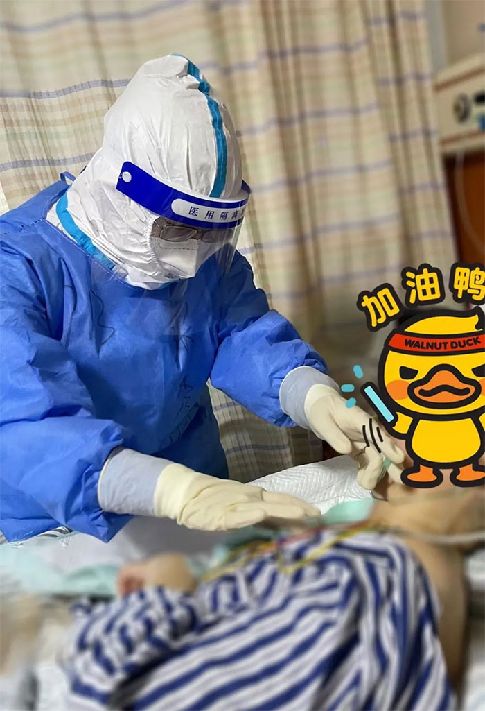 她們不僅要做好患者的專業(yè)護(hù)理、病情觀察、心理護(hù)理、病室消毒、健康宣教,還需要做好生活護(hù)理如患者的送水、送餐等,同時(shí)還承擔(dān)著工作區(qū)的清潔消毒工作。