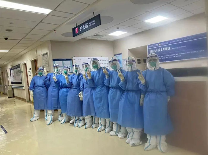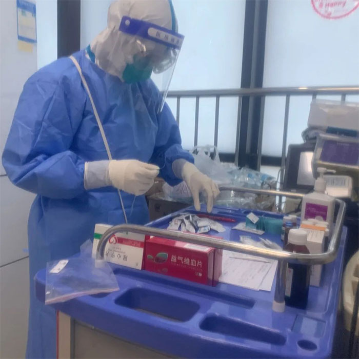 3月7日開始7B全體護(hù)理人員克服個(gè)人及家庭的各種困難,很多護(hù)士堅(jiān)守崗位已近兩月。科里人手緊缺時(shí),宋會敏、謝童童、程文陽、張慧敏、董梓一、劉紅霞每日穿著厚厚的防護(hù)服都是連續(xù)工作12小時(shí),日夜交替2班倒,精心護(hù)理著近50名患者。崔慧慧連著上大夜班,錯(cuò)過了孩子的三歲生日;馮敏護(hù)士意外摔倒,導(dǎo)致后顱出現(xiàn)拳頭大小皮下血腫,冰袋冷敷著依然崗位堅(jiān)守至今;姚永茜、蔣新晨、陳琳結(jié)束隔離立馬返院,或駐守科室,或支援醫(yī)院隔離病區(qū);付婷婷兩度請纓外出到區(qū)集中隔離點(diǎn)支援防疫工作……