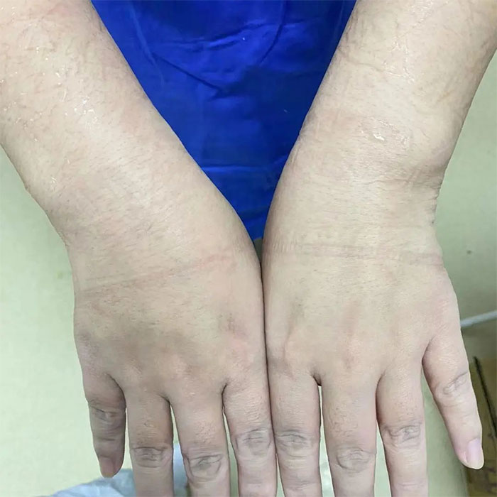 不透氣的防護(hù)服汗?jié)窳怂齻兊囊路皖^發(fā),緊繃的口罩在她們臉上勒出了兩條明顯的血痕,護(hù)目鏡片里一滴滴汗水凝結(jié)成的霧氣模糊了她們的雙眼,讓平日得心應(yīng)手的一些工作變得十分困難,特別是患者的靜脈穿刺、采集血標(biāo)本更是難上加難。