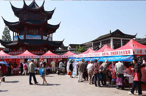 為紀(jì)念第70個(gè)世界紅十字日,迎接新修訂《中華人民共和國(guó)紅十字會(huì)法》的施行,大力弘揚(yáng)2017年“攜手人道、關(guān)愛(ài)生命”的紅十字主題,深入宣傳 “人道 博愛(ài) 奉獻(xiàn)”的紅十字精神,上海市閔行區(qū)七寶鎮(zhèn)紅十字會(huì)于5月10日上午聯(lián)合上海藍(lán)十字腦科醫(yī)院及區(qū)紅十字會(huì)、鎮(zhèn)紅十字會(huì)、愛(ài)衛(wèi)辦、計(jì)生辦、教委、科協(xié)、殘聯(lián)等十幾家單位,在七寶古鎮(zhèn)鐘樓廣場(chǎng)開(kāi)展了以“《紅十字會(huì)法》與你同行”為主題的5.8紅十字博愛(ài)周大型公益宣傳活動(dòng)。