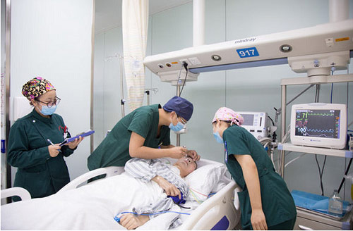 上午10點,一名腦出血患者病情危重被緊急轉(zhuǎn)入ICU,“病人心率不齊,呼吸頻率加快,需緊急實施搶救!趕快通知醫(yī)生!”張棕智第一時間趕到床前做出應急反應,為病人行心肺復蘇、氣管插管等搶救措施。等到監(jiān)測設(shè)備慢慢顯示病人的脈搏、血壓等回歸正常,患者情況趨于穩(wěn)定,張棕智才完全松了一口氣。