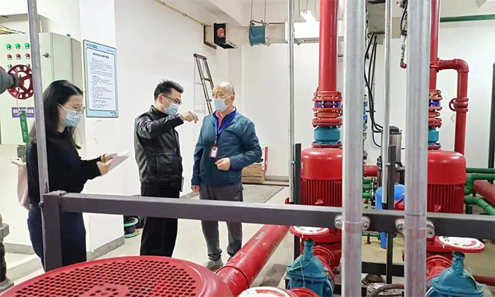 醫(yī)療場所建筑結(jié)構(gòu)復(fù)雜、人員密集,尤其是高樓層區(qū)域,一旦發(fā)生火情,人員快速疏散撤離面臨著重大考驗。檢查組首先來到負(fù)一樓消防水泵房,檢查消防水泵控制柜供電、管網(wǎng)壓力等是否正常。隨后來到安保消防控制室,檢查醫(yī)院消防安全制度、值班記錄等是否完整詳實。