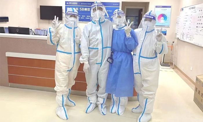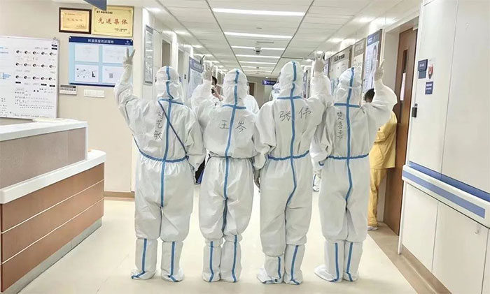 隨著時間的推移,因工作勞累導(dǎo)致抵抗力下降,5B病區(qū)不少醫(yī)護人員生病了,倒下了。余志良主任也在堅持工作了近一個月后,不幸感染了病毒。隔離治療期間,他仍然心系醫(yī)院和科室,每天在線了解患者和同事的情況,協(xié)調(diào)處理棘手問題。在核酸檢測轉(zhuǎn)陰按規(guī)定解除隔離觀察后,余主任絲毫不畏懼風(fēng)險,第一時間返崗,重新與大家“并肩作戰(zhàn)”。