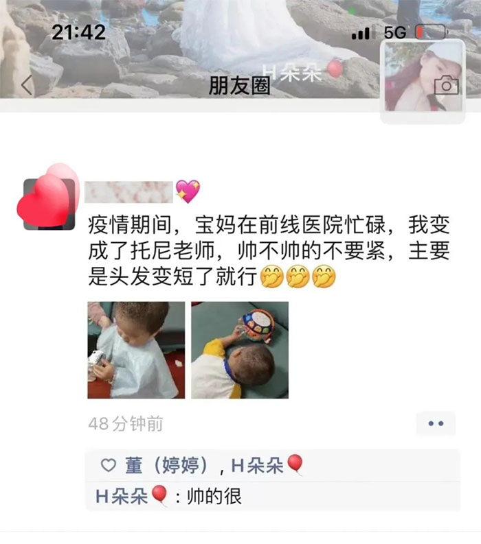 護士長助理黃朵朵剛當(dāng)上“寶媽”不久,當(dāng)住院病區(qū)實施閉環(huán)管理后,她主動請纓留守。一邊要做好防疫,一邊還要做好護理,忙碌的工作讓她無暇顧及孩子和家人,短暫的視頻通話是小家庭僅有的面對面說話的機會,每每聽到呀呀學(xué)語的孩子“找媽媽”、“要媽媽”的呼喚,都令黃朵朵感到眼睛有些濕潤。前段時間,黃朵朵作為密接對象被隔離觀察,排除風(fēng)險后她再次放棄回家與家人團聚,第一時間申請“歸隊”。