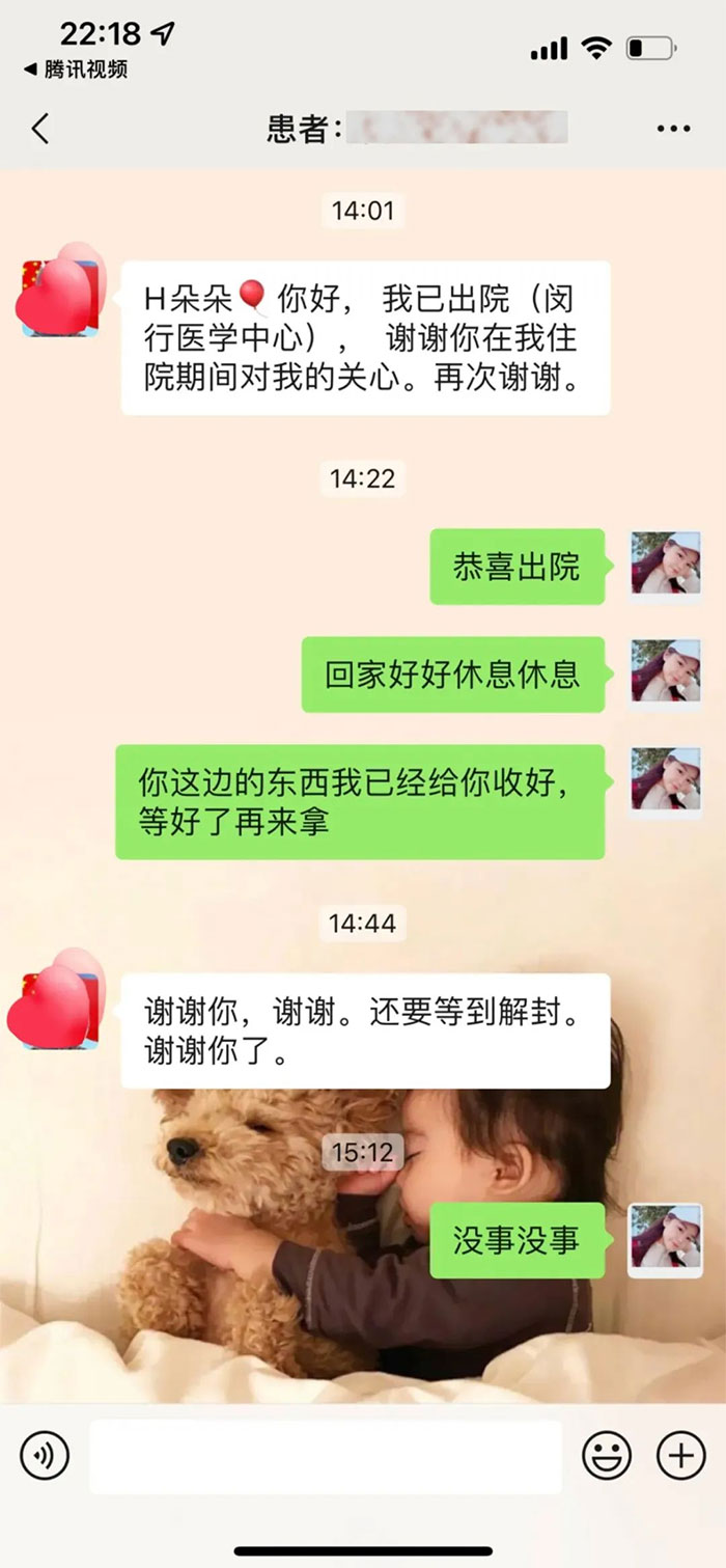 ▲ 患者通過微信致謝