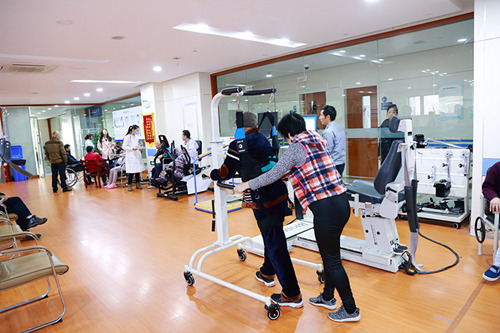 中風(fēng)病人度過(guò)危險(xiǎn)的急性期后,在專業(yè)醫(yī)務(wù)人員的指導(dǎo)下接受康復(fù)訓(xùn)練