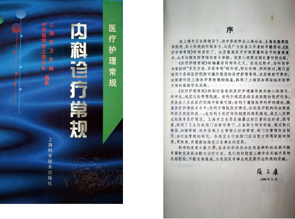 ▲ 時(shí)任中華人民共和國(guó)衛(wèi)生部部長(zhǎng)張文康為《內(nèi)科診療常規(guī)》作序