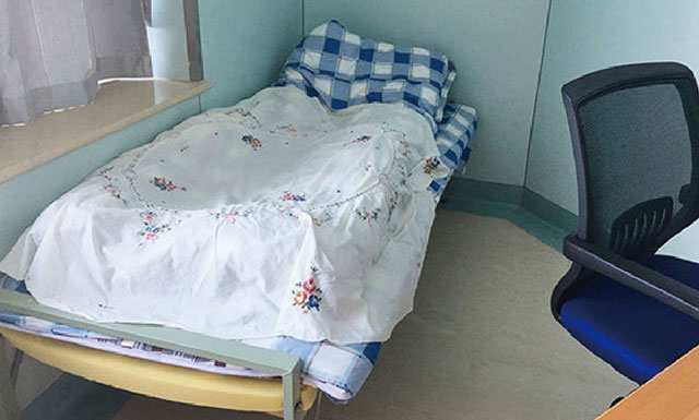 ▲ 搭個(gè)簡易床鋪,休息室就是李魯萍的“家”