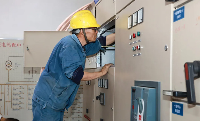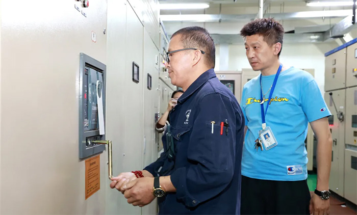 ▲ 總務(wù)科專業(yè)電工進(jìn)行停電操作