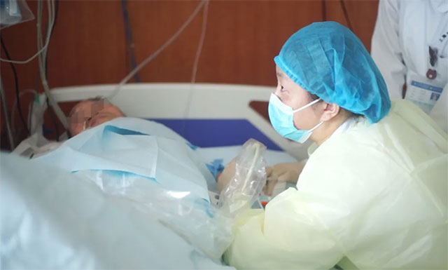 ▲ 李楠楠護(hù)士長,正為患者進(jìn)行PICC置管穿刺