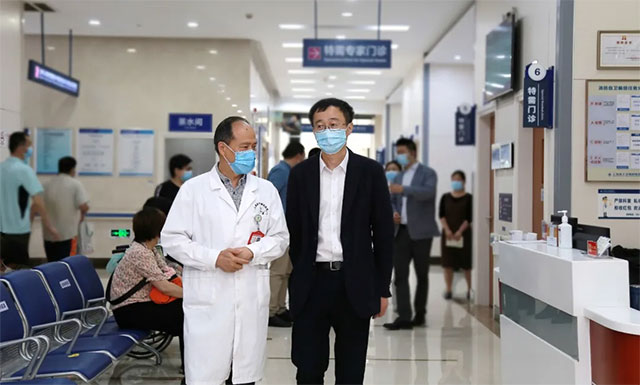 6月8日下午,上海市衛(wèi)健委主任鄔驚雷帶隊蒞臨上海藍十字腦科醫(yī)院“飛行”檢查疫情防控工作,閔行區(qū)衛(wèi)健委主任杭文權(quán)等陪同。上海藍十字腦科醫(yī)院院長項耀鈞等院領(lǐng)導陪同迎檢。