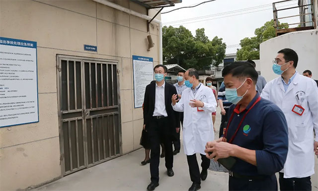 ▲ 閔行區(qū)衛(wèi)健委主任杭文權(quán)(中間)陪同檢查