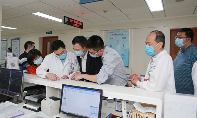 ▲ 深入病區(qū)查看住院患者及陪護家屬核酸檢測情況