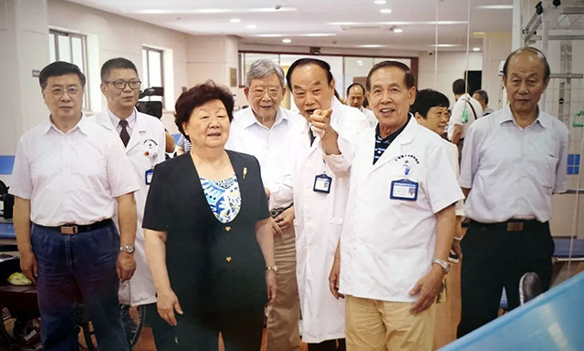 ▲ 時任上海市副市長左煥琛(左一)和上海市委副書記殷一璀(右一)到訪廣中醫(yī)院腦血管病康復(fù)病房