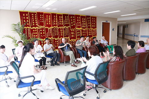 為進(jìn)一步加強(qiáng)醫(yī)務(wù)人員和患者之間的溝通和交流,更好地了解患者對(duì)醫(yī)療服務(wù)的需求,提高醫(yī)院管理水平,為患者提供更優(yōu)質(zhì)的醫(yī)療服務(wù)。日前,上海藍(lán)十字腦科醫(yī)院神經(jīng)內(nèi)科四病區(qū)開(kāi)展了一場(chǎng)別開(kāi)生面的工休座談會(huì),醫(yī)務(wù)科長(zhǎng)沈廣智、科主任李世平、醫(yī)療服務(wù)部主任羅佳、護(hù)士長(zhǎng)陳麗珍及病區(qū)部分患者及家屬代表等圍坐一團(tuán),治心共情零距離交流。