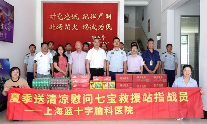 ▲ 上海藍(lán)十字腦科醫(yī)院慰問七寶消防救援站指戰(zhàn)員