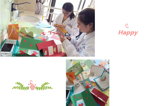 卡片是DIY精心制作的:每一張都獨(dú)一無二,有患者的專屬祝福!