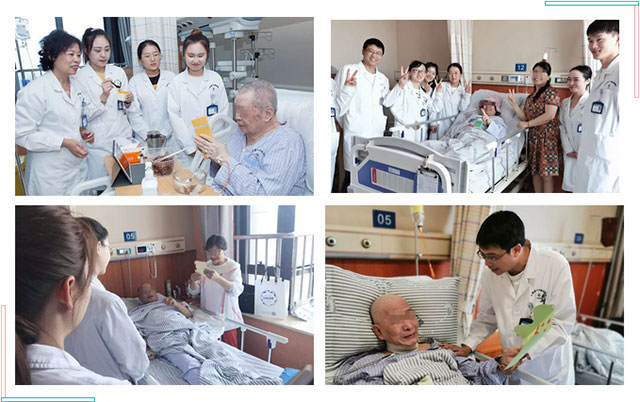 本次活動,文藝社組成7支小分隊,看望慰問了13個病區(qū)的13位患者?祻(fù)師孫安琪表示,平時給患者做康復(fù),我們更多關(guān)注地是他們的身體狀況,但通過這次活動,和他們交流,感覺我們的距離更近了。今后工作中,我們要多將這種人性化的關(guān)懷帶給患者。