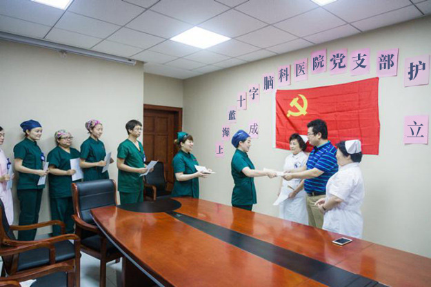 此次成立的護理黨小組,分布在醫(yī)院各病區(qū)護理團隊當(dāng)中,他們的平均年齡在30歲左右,是一個充滿熱情與干勁的可愛團隊。黨支部書記朱敏表示:“藍十字腦科醫(yī)院黨支部要在閔行區(qū)七寶鎮(zhèn)黨委領(lǐng)導(dǎo)下,一步一個腳印,扎扎實實把黨小組建設(shè)好,帶領(lǐng)團隊健康發(fā)展,保持團隊的純潔、穩(wěn)定,用黨建促進醫(yī)院良性、健康發(fā)展,讓醫(yī)院的護理服務(wù)質(zhì)量更上一個臺階,讓我們的護理團隊充滿愛心與正能量。”