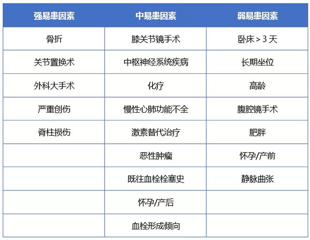 ▲ 肺栓塞(PE)易患因素