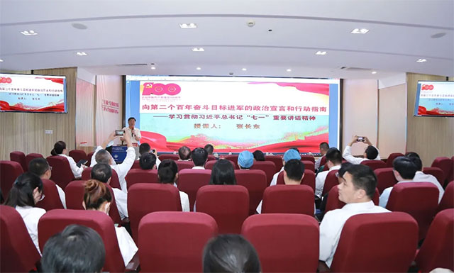 一百年前的今日——1921年7月23日——是中國共產(chǎn)黨第一次全國代表大會在上海召開的日子。2021年7月21日下午,上海藍十字腦科醫(yī)院掀起學(xué)習(xí)熱潮,特邀武警上海市總隊原副政委、原武警上海指揮學(xué)院院長、副教授,上海市現(xiàn)代領(lǐng)導(dǎo)進修學(xué)院教授張長東蒞臨授課,主題為《向第二個百年奮斗目標(biāo)進軍的政治宣言和行動指南——學(xué)習(xí)貫徹習(xí)近平總書記“七一”重要講話精神》。朱敏書記與全體黨員、入黨積極分子、共青團員、及各科室醫(yī)護骨干仔細聆聽,參加公司慶祝建黨百年文藝匯演的部分演職人員也到場聆聽,該主題活動由郭俊艷副院長主持。