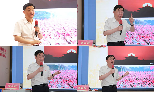張長東教授解讀了習(xí)總書記“七一”重要講話精神,重要講話貫穿辯證唯物主義和歷史唯物主義的世界觀方法論,內(nèi)涵豐富、博大精深、思想深邃,立意高遠、視野宏闊、擲地有聲,有許多新的理念、思想、立場、觀點,這些重要思想理念,進一步豐富了習(xí)近平新時代中國特色社會主義思想,展現(xiàn)了馬克思主義政治家的格局和氣度,體現(xiàn)了強烈的歷史擔(dān)當(dāng)和熾熱的為民情懷。