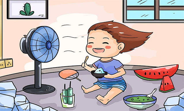 空調(diào)溫度不要調(diào)得太低,室內(nèi)外溫差以不超過7℃~8℃為宜。用空調(diào)的時(shí)間不宜過長(zhǎng),不要頻繁出入空調(diào)房。電風(fēng)扇切勿直接對(duì)著身體和頭部吹。