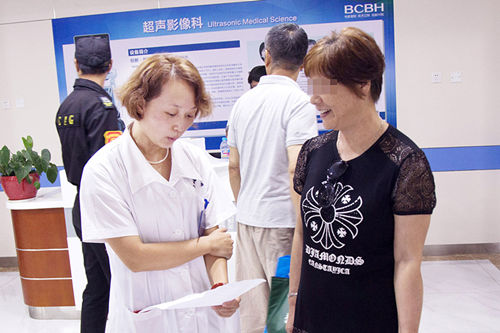 應(yīng)阿姨做完頸部彩超檢查后向工作人員咨詢