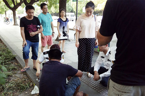 羅佳確保該男士安全后,蹲下來(lái)仔細(xì)觀察其發(fā)作癥狀