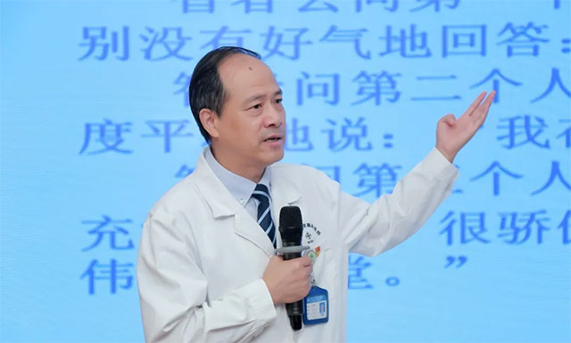 隨后,項耀鈞院長以“醫(yī)院優(yōu)質(zhì)服務(wù)體系之職業(yè)精神”為主題,就職業(yè)精神在個人和醫(yī)院發(fā)展進步方面的重要作用為切入點,分享了自己的親身經(jīng)歷和經(jīng)典案例。多年前,項耀鈞院長曾前往日本考察交流,當(dāng)?shù)卣麧崈?yōu)美的環(huán)境給他留下了深刻的印象。在一座公共衛(wèi)生間,他曾親眼看到一位穿著整潔的保潔工人,跪趴在小便池前,用干凈的抹布擦拭地面,這樣的敬業(yè)精神著實讓他感到震撼和欽佩。“即使是一份非常普通的職業(yè),他們都以‘工匠’態(tài)度去對待,這就是職業(yè)精神!”