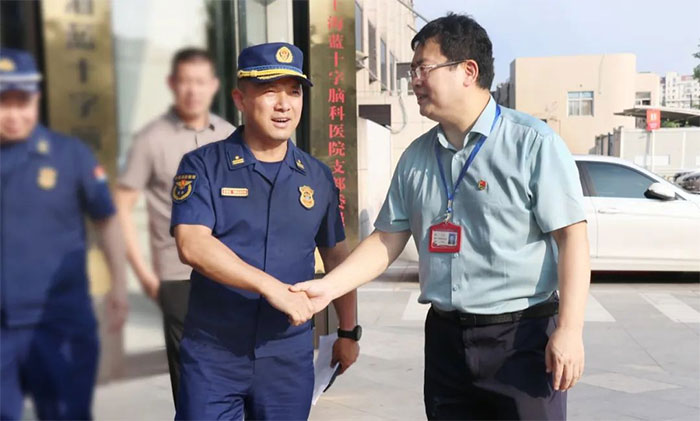 為全面提升轄區(qū)內(nèi)大型醫(yī)療機構(gòu)火災(zāi)防御能力,深入推進火災(zāi)防控工作,確保消防安全形勢持續(xù)平穩(wěn),8月10日下午,閔行區(qū)消防救援支隊政治部主任高順才攜七寶消防救援站站長潘曙鴻等一行10余人蒞臨上海藍十字腦科醫(yī)院進行轄區(qū)內(nèi)重點單位消防安全突擊調(diào)研。醫(yī)院總經(jīng)理兼書記朱敏、副總經(jīng)理兼工會主席吳春芳、總務(wù)科副科長汪嘉偉、微型消防站站長陳偉智等陪同調(diào)研。