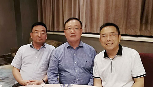 ▲李世平教授(右一)與英國藍開夏大學特聘教授薛孟周教授(中)合影