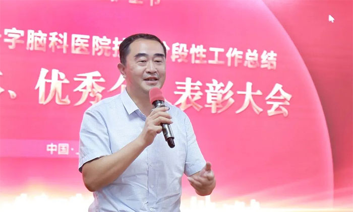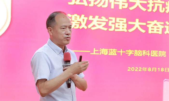 衛(wèi)健委駐點(diǎn)抗疫專家組組長(zhǎng)、市五醫(yī)院醫(yī)務(wù)科科長(zhǎng)施勁東以嘉賓身份,帶著久別重逢的喜悅再次來到藍(lán)十字腦科醫(yī)院,難掩心中的激動(dòng)之情。