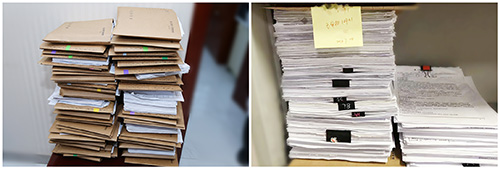 ▲堆積如山的文書,是心血的凝結(jié)