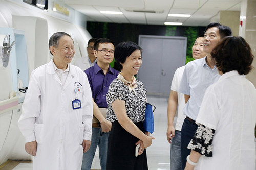 領導們先后深入我院ICU病區(qū)、手術室、神經(jīng)內(nèi)科3B病區(qū)、神經(jīng)康復醫(yī)學科、美國尼高力視頻腦電室、高壓氧科、醫(yī)學影像科、DSA血管介入科等調(diào)研,慰問醫(yī)務人員。
