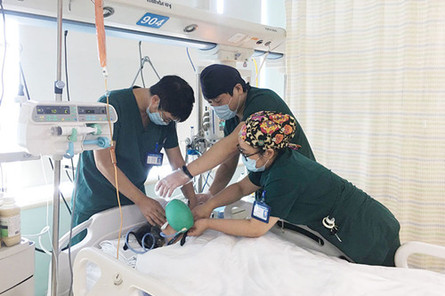 李魯萍主任和她的學(xué)生一起,搶救重癥患者