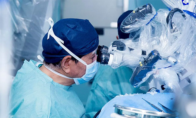 ▲ 通過蔡司顯微鏡(雙熒光),沈建康教授實(shí)施手術(shù)