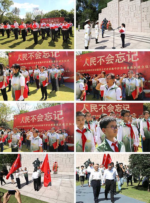 2021年9月30日,由上海市擁軍優(yōu)屬基金會、上海市退役軍人事務(wù)局主辦,龍華烈士陵園等75家烈士紀(jì)念設(shè)施保護(hù)單位協(xié)辦的“人民不會忘記”烈士紀(jì)念日主題祭掃活動暨上海烈士紀(jì)念設(shè)施守護(hù)崇敬志愿服務(wù)隊(duì)成立儀式,在上海龍華烈士陵園隆重舉行。