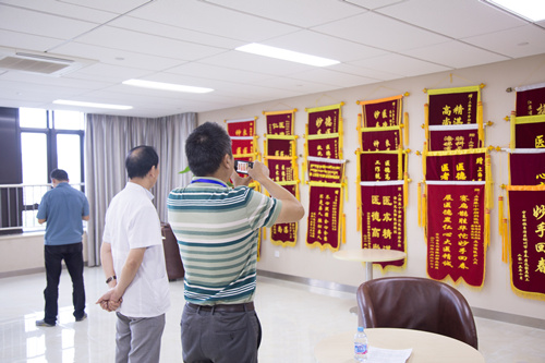 監(jiān)督員陳國明在拍錦旗墻