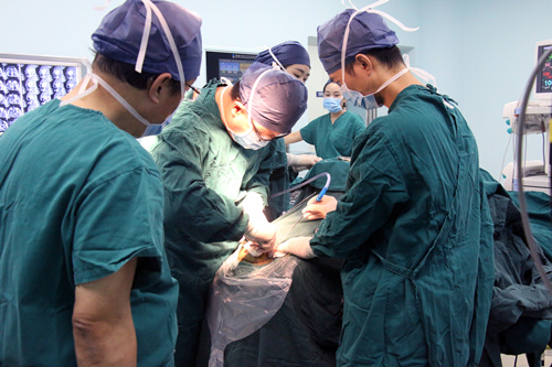 專家正在嫻熟地行腦膜瘤切除手術(shù)