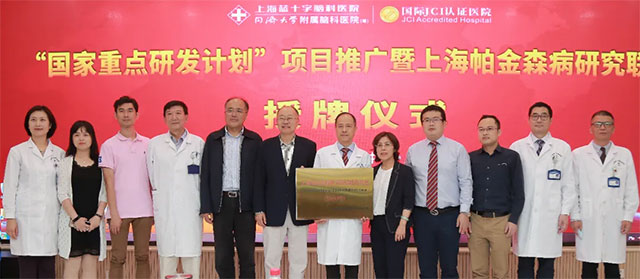 該研究項(xiàng)目牽頭人、上海交通大學(xué)附屬新華醫(yī)院劉振國教授代表上海帕金森病研究聯(lián)盟為上海藍(lán)十字腦科醫(yī)院授牌。