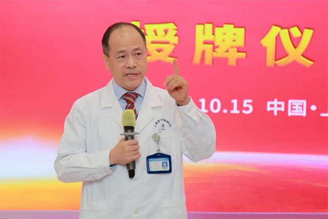 ▲ 劉振國教授代表聯(lián)盟向上海藍(lán)十字腦科醫(yī)院授牌