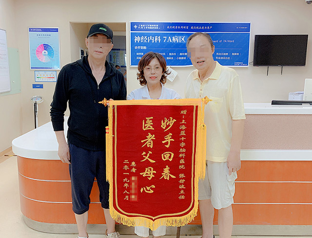 最后,今年3月其父慕名將他兒子轉(zhuǎn)診至上海藍(lán)十字腦科醫(yī)院,由王玉霞主任確診為“營養(yǎng)不良周圍神經(jīng)病變”,經(jīng)過張靜波主任和7A病區(qū)醫(yī)護(hù)人員悉心照料,經(jīng)過一個多月,該男生開始喝粥了,體力也逐漸恢復(fù),再過兩個月,該男生能下地走動了,自入院100天不到就順利出院了。他父親非常感激,連連送紅包給王玉霞和張靜波主任,被婉拒,出院那天送了兩面錦旗給這兩位主任,并一再邀請張靜波來寧波“旅游”亦被張靜波主任婉拒了。