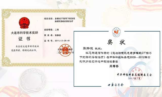 ▲ 張主任溶栓研究獲得多種榮譽和證書