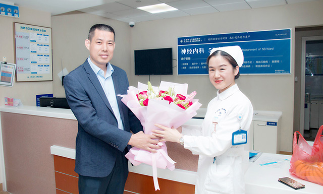 這位護(hù)士的遭遇牽動(dòng)著醫(yī)院領(lǐng)導(dǎo)的心。得知事件發(fā)生后,院領(lǐng)導(dǎo)高度重視,醫(yī)院工會(huì)立即組織慰問(wèn)。本月18日,院長(zhǎng)項(xiàng)耀鈞、工會(huì)主席吳春芳、副院長(zhǎng)周詠梅等領(lǐng)導(dǎo)來(lái)到事發(fā)病區(qū),親切慰問(wèn)了受傷護(hù)士,對(duì)她的遭遇表達(dá)了深切的關(guān)懷,對(duì)她的堅(jiān)忍和寬容給予了肯定,同時(shí),更對(duì)背后默默理解與支持這位護(hù)士的家屬表示由衷的感謝。