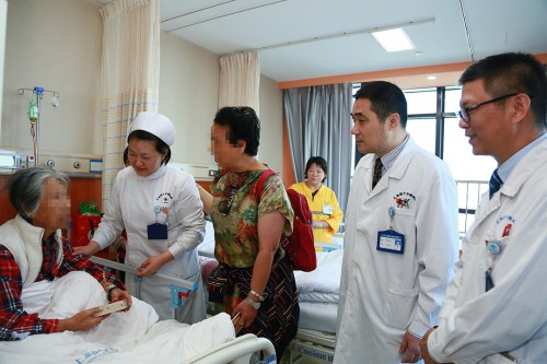 當(dāng)天,院方一共為60歲以上的住院病人送去了近400份重陽(yáng)糕。定居荷蘭40多年的辛女士看到了這一幕十分感動(dòng),“我要特別謝謝你們醫(yī)院對(duì)我媽媽的照顧,我從國(guó)外回來(lái),第一次在國(guó)內(nèi)看到這么好的醫(yī)院,這么好的服務(wù),比我自己照顧都要好,真的謝謝你們。”